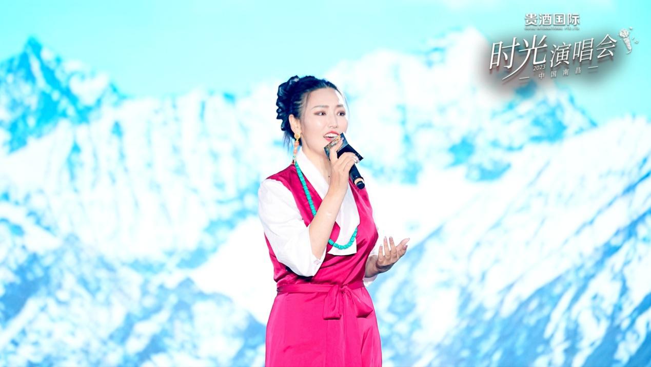 舞臺上,琥珀歲月,醉心時(shí)光,音樂穿越時(shí)空,喚起記憶的波瀾。演唱會以舞蹈《青花瓷》拉開序幕,舞者手中的青花瓷瓶,配合東方神韻的輕柔舞姿,這一切仿佛傾訴著貴酒國際對傳統(tǒng)文化的傳承與熱愛,將音樂與舞蹈的融合演繹得淋漓盡致。毛一涵、劉航、莫斯?jié)M、王強(qiáng)等依次登臺,用歌聲跨越時(shí)光,共同體驗(yàn)音樂與時(shí)光交織的魅力。一場橫跨味覺與聽覺的盛會,應(yīng)和滕王閣浩瀚雄姿?!队成郊t》、《紅旗飄飄》、《青藏高原》、《秋天不回來》等經(jīng)典旋律,讓現(xiàn)場觀眾感受到了濃郁的中國紅色文化與江西文化的底蘊(yùn)。觀眾們仿佛穿越時(shí)光,重溫那些難忘的年華,共同感懷著芳華歲月的美好回憶。