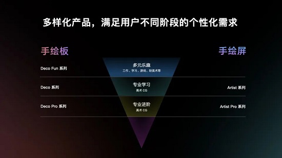 目前,XPPen 共有 2 大品類,5 大系列產(chǎn)品,包括數(shù)位板類的 Deco Fun、Deco、Deco Pro 系列及數(shù)位屏類 Artist、Artist Pro 系列產(chǎn)品。其中,Deco Fun 產(chǎn)品線系列面向多元樂趣用戶;Deco 和 Artist 產(chǎn)品線系列面向?qū)I(yè)學(xué)習(xí)用戶;Deco Pro 和 Artist Pro 產(chǎn)品線系列面向?qū)I(yè)進(jìn)階用戶。全新的產(chǎn)品布局,可針對不同成長階段的用戶需求,打造從興趣入門到專業(yè)學(xué)習(xí)再到專業(yè)進(jìn)階的產(chǎn)品矩陣。