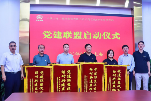 啟動儀式現場,青浦區(qū)朱家角鎮(zhèn)黨委委員王磊,中鐵上海工程局集團有限公司城建分公司黨委副書記、工會主席張文續(xù),上海申鐵投資有限公司項目經理何喬石現場為各聯建單位授予“黨建聯盟促發(fā)展,結對共建顯擔當”錦旗,并共同見證上海示范區(qū)線5標項目部與各單位締結《黨建聯建協議書》。據了解,聯盟成立后,各聯建單位將相互交流黨建工作經驗,共同開展黨建共建活動,通過推進區(qū)域化黨建,盤活黨組織力量資源,實現黨建與生產深度融合,以高質量黨建引領高質量發(fā)展。