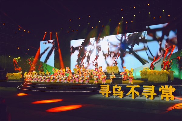 尋烏還是具有光榮革命傳統(tǒng)的紅色故土、革命老區(qū)。節(jié)目現(xiàn)場(chǎng),情景演繹《大美尋烏》以祖孫對(duì)話(huà)、導(dǎo)游講解、視頻展示等形式,帶觀眾身臨其境地體驗(yàn)了壯美秀麗的東江源、古色古香的大夫第和彰顯紅色精神的“一館七址”。具有光榮革命傳統(tǒng)的尋烏人民,銘記歷史,感恩奮進(jìn),凝聚智慧,勇于擔(dān)當(dāng),砥礪前行,奮力譜寫(xiě)尋烏高質(zhì)量發(fā)展新篇章,描繪了一幅尋烏社會(huì)主義現(xiàn)代化建設(shè)新畫(huà)卷!歡歌笑語(yǔ)唱盛世,一首《尋烏不尋?!犯浅鰧跞嗣袂趧趭^進(jìn)、追尋美好生活的幸福愿景!