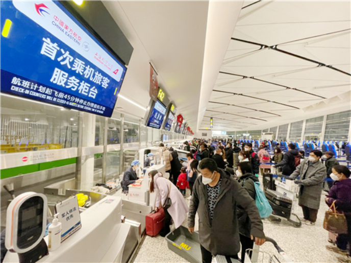 春運(yùn)首日的上海虹橋、浦東機(jī)場(chǎng),旅客客流增大