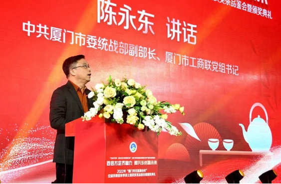 2月24日,由廈門市工商聯(lián)(總商會)、安溪縣人民政府主辦,廈門市安溪商會承辦,中共安溪縣委統(tǒng)戰(zhàn)部、安溪縣茶業(yè)管理委員會辦公室、安溪縣工商聯(lián)協(xié)辦的2022年“廈門市安溪商會杯”安溪鐵觀音秋季茶王賽獲獎茶品鑒會暨頒獎典禮在廈門佰翔五通酒店盛大舉行。本次活動是為了進一步落實廈門市工商聯(lián)和安溪縣人民政府提出的“萬企興萬村·百會萬企興村富民行動”計劃——廈門市安溪商會助推家鄉(xiāng)茶產(chǎn)業(yè)振興活動,也是“廈門企業(yè)家日”配套活動之一。