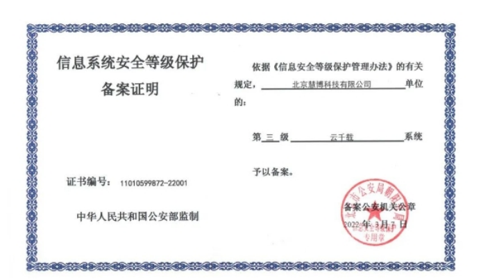 (慧博等保三級(jí)認(rèn)證證書)