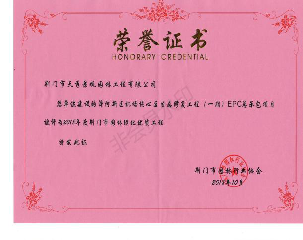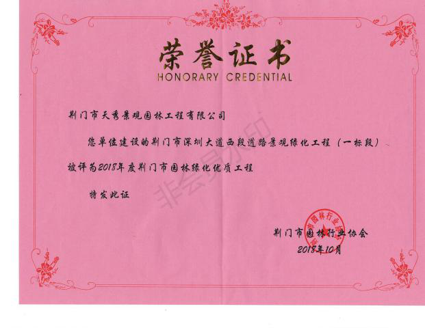 近兩年來,公司發(fā)展迅速,業(yè)績(jī)逐年遞增,承建許多大中型綠化工程,如深圳大道綠化工程、愛飛客機(jī)場(chǎng)核心區(qū)、車橋、蘇集、渠首閘EPC總承包項(xiàng)目等。其中,深圳大道綠化工程、愛飛客機(jī)場(chǎng)核心區(qū)綠化工程于2018年10月被評(píng)為“市優(yōu)質(zhì)工程”,目前正在申報(bào)“省優(yōu)質(zhì)工程”。