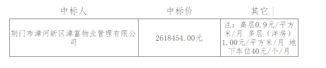 鳳凰小區(qū)前期物業(yè)服務(wù)于2017.04.28在荊門(mén)市公共資源交易網(wǎng)上發(fā)布了中標(biāo)候選人公示,公示期為2017.04.28至2017.05.03?,F(xiàn)對(duì)本次招標(biāo)的中標(biāo)結(jié)果公告如下: