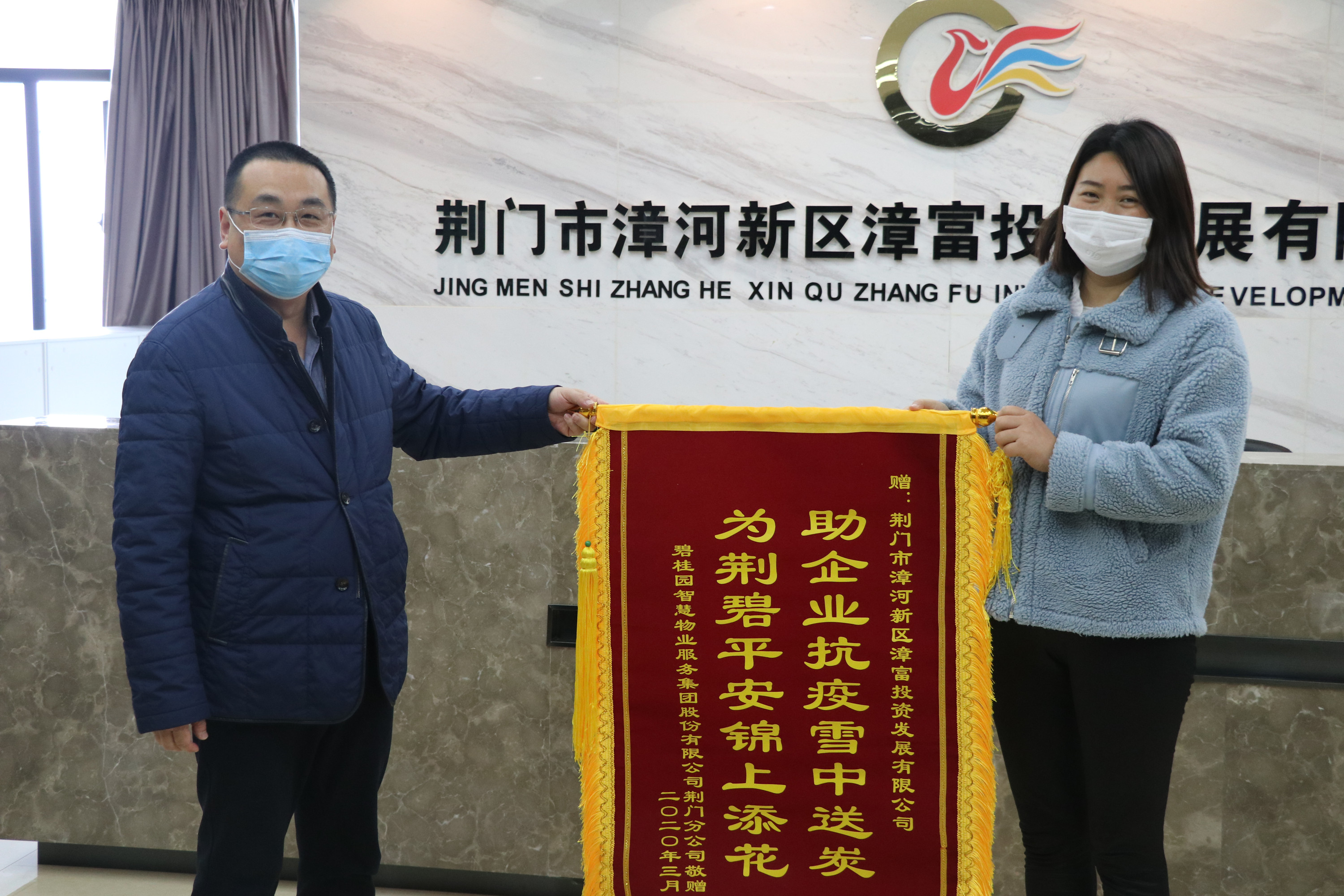 “你們辛苦了,感謝你們在抗疫期間所做的一切,幫助我們物業(yè)度過了抗疫難關(guān)、減輕了工作量,為我們的業(yè)主提供了最好的服務(wù)!”3月31日上午,碧桂園智慧物業(yè)服務(wù)集團股份有限公司荊門市分公司總經(jīng)理姜俊將一面“助企業(yè)抗疫雪中送炭,為荊碧平安錦上添花”的錦旗送到碧桂園三期包聯(lián)單位漳富公司,向“不懼風(fēng)險、勇于擔當”下沉到社區(qū)抗疫中的“戰(zhàn)友”表示感謝。