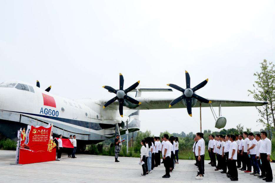 活動(dòng)中,全體黨員沿著極客公園“紅色航班”線路實(shí)地參觀學(xué)習(xí),在園區(qū)東大門廣場(chǎng)觀看《我和我的祖國(guó)》專題教育片,在鯤龍AG600飛機(jī)前重溫入黨誓詞,參觀園區(qū)極客之舟、幻境球幕影院、三棲模型基地、戰(zhàn)斗機(jī)群、熱氣球營(yíng)地、飛行營(yíng)地等特色項(xiàng)目,感受航空文化,觀看《水轟5日志》《永恒的懷念》等紅色題材情景劇視頻,通過(guò)講述飛機(jī)背后的革命歷史、功勛感人故事,激發(fā)全體黨員對(duì)中國(guó)航空文化的自豪感,學(xué)習(xí)先輩精神,感悟航空?qǐng)?bào)黨。