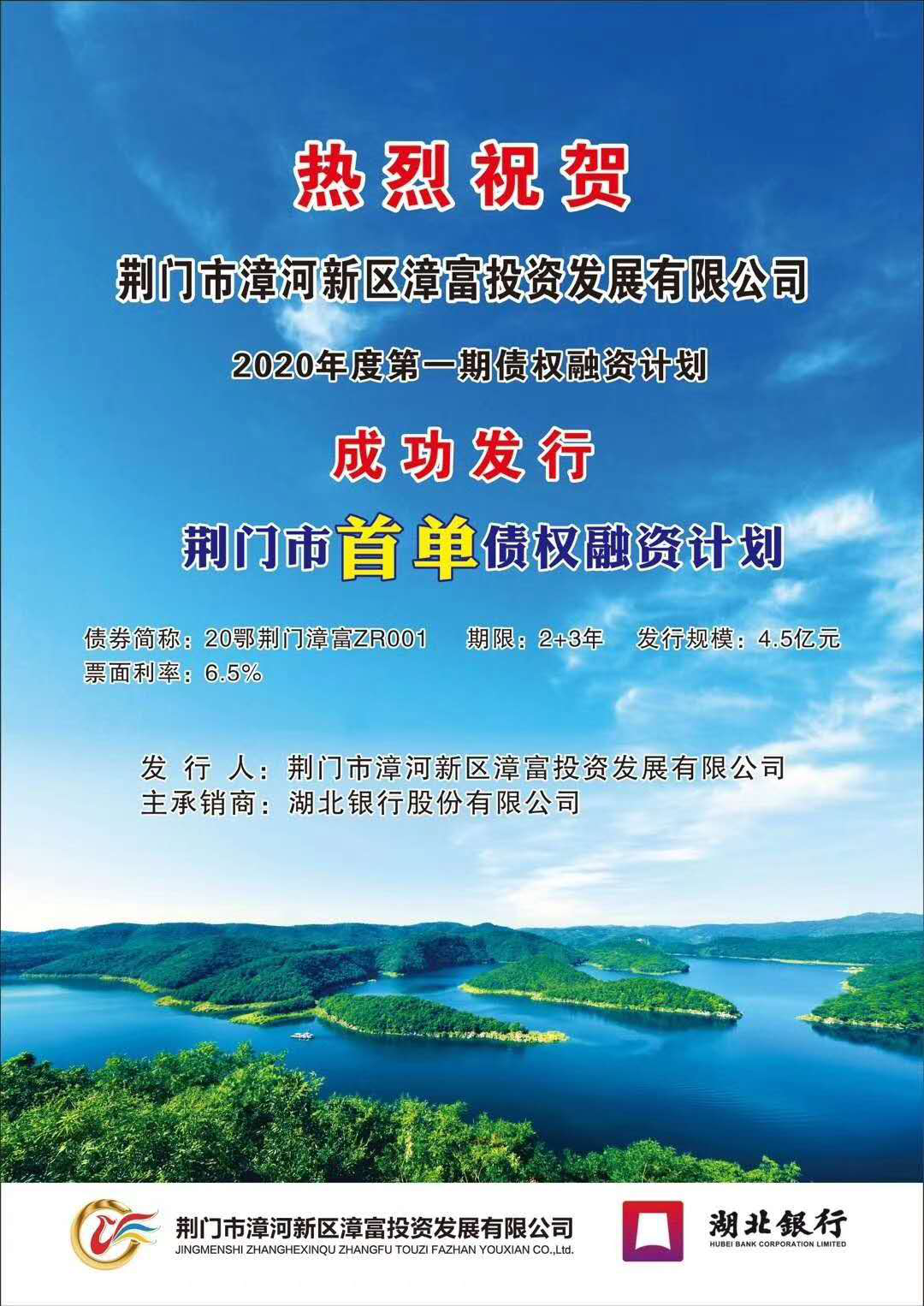 該筆債權(quán)融資計(jì)劃是荊門市首單成功發(fā)行的債權(quán)融資計(jì)劃,期限5年,票面利率6.5%,主承銷商為湖北銀行股份有限公司。這是漳富公司積極努力開拓融資渠道、創(chuàng)新融資方式的一大進(jìn)展,同時也是降低公司整體融資成本、改善債務(wù)結(jié)構(gòu)的重大舉措。