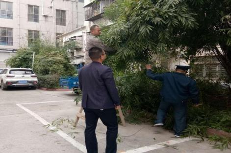 金象小區(qū)1棟綠化帶內(nèi)景觀竹進(jìn)行修剪