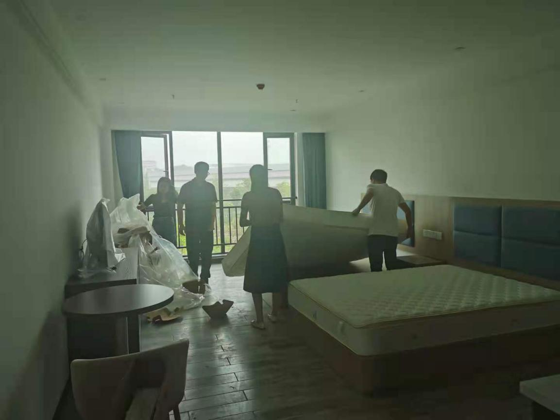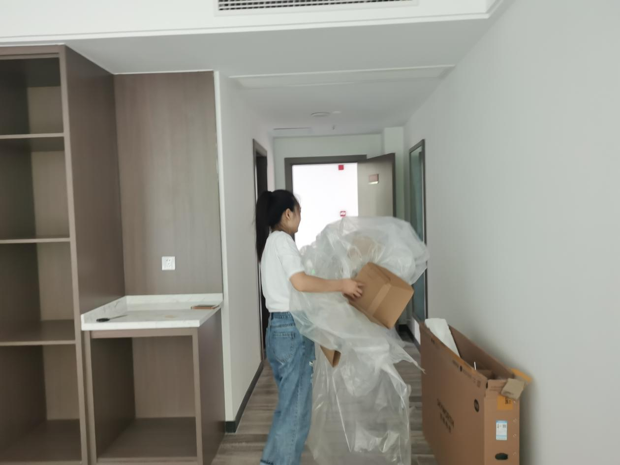 在藍領(lǐng)公寓的打掃現(xiàn)場,員工們有條不紊的開展清理工作。雖然天氣炎熱,但是同志們不畏酷暑,干勁十足,不嫌臟不怕累,共清潔、整理房間37間。