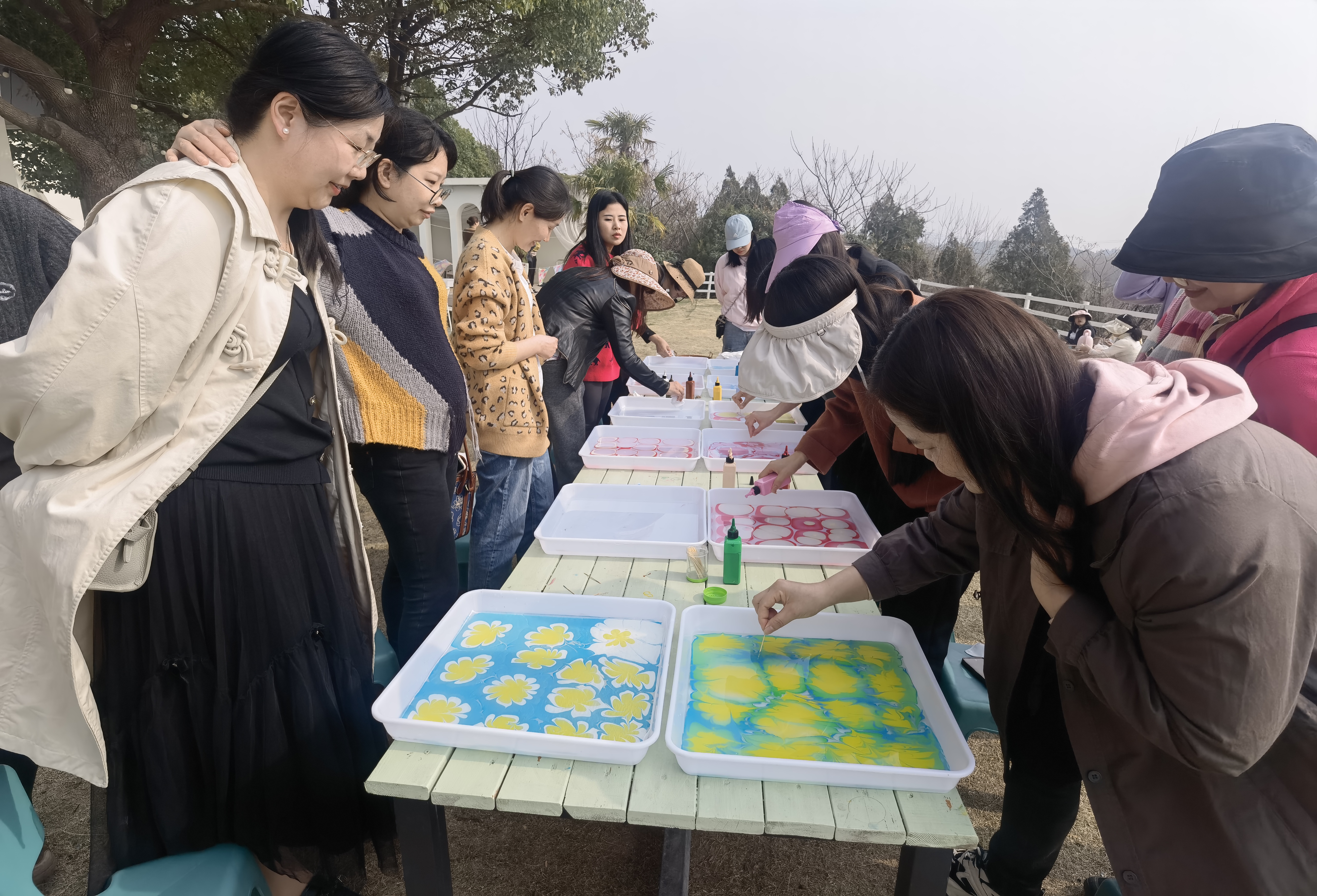 隨后,大家便在老師的指導(dǎo)下,以畫液為紙,設(shè)計花紋、挑選顏色、創(chuàng)意制作、定色成型……整個活動在溫馨愉快的氛圍下進(jìn)行,大家充分發(fā)揮自己對色彩和畫面的想象,從調(diào)色、創(chuàng)作、水拓、固色到最后的晾干,既專注又認(rèn)真地體驗著制作水拓絲巾的全過程。當(dāng)一件件獨一無二、風(fēng)格各異、意象橫生的絲巾應(yīng)運而生時,大家內(nèi)心都充滿了幸福感、獲得感與滿足感。