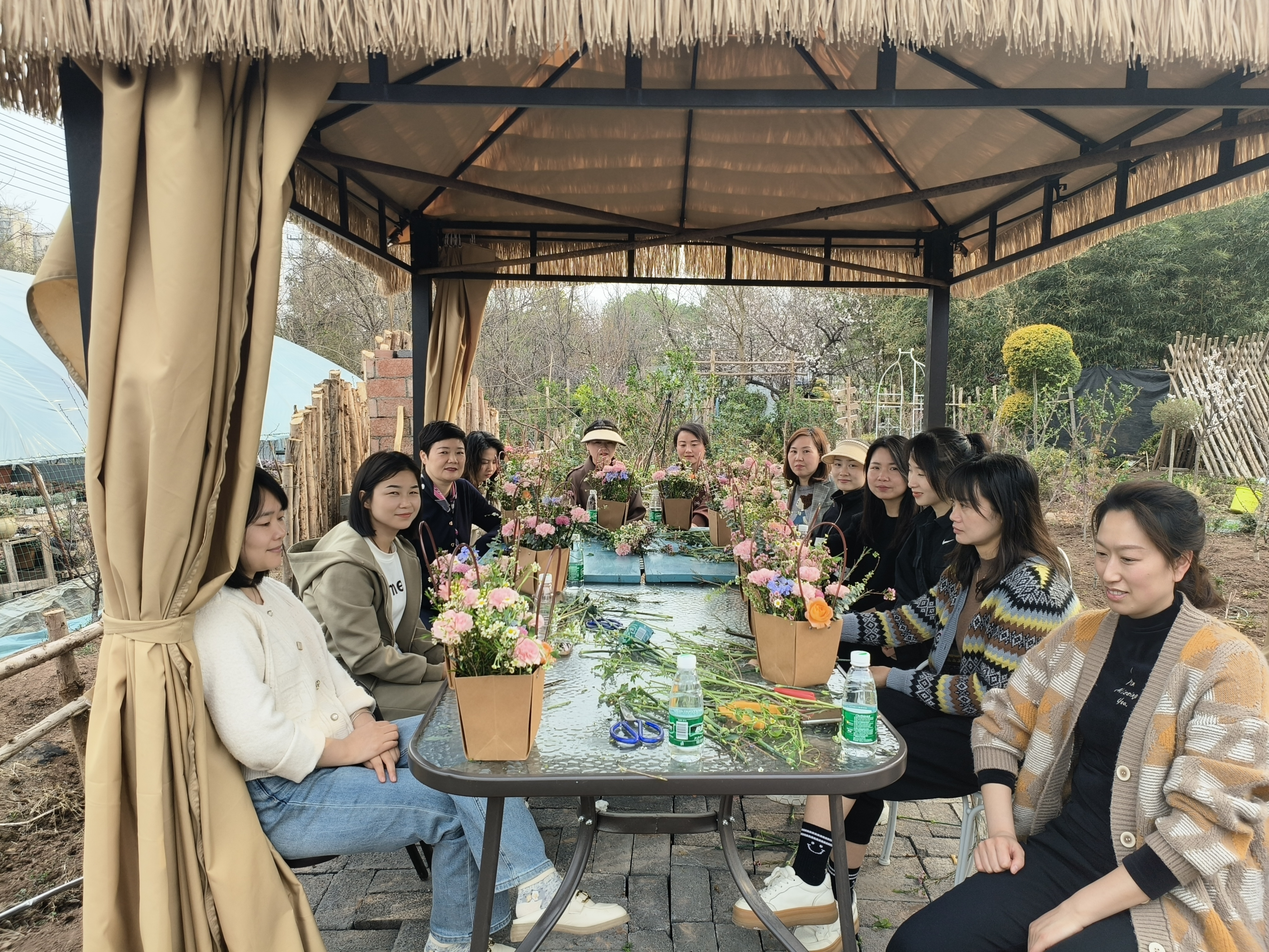 活動在輕松愉快的氛圍中開始,專業(yè)花藝?yán)蠋煼謩e從鮮花的取材、剪葉,插花的顏色搭配和層次布局等方面給大家進(jìn)行了細(xì)致的介紹。經(jīng)過半個多小時的嘗試和探索,一盆盆優(yōu)雅別致的插花作品呈現(xiàn)在春日的暖陽中。