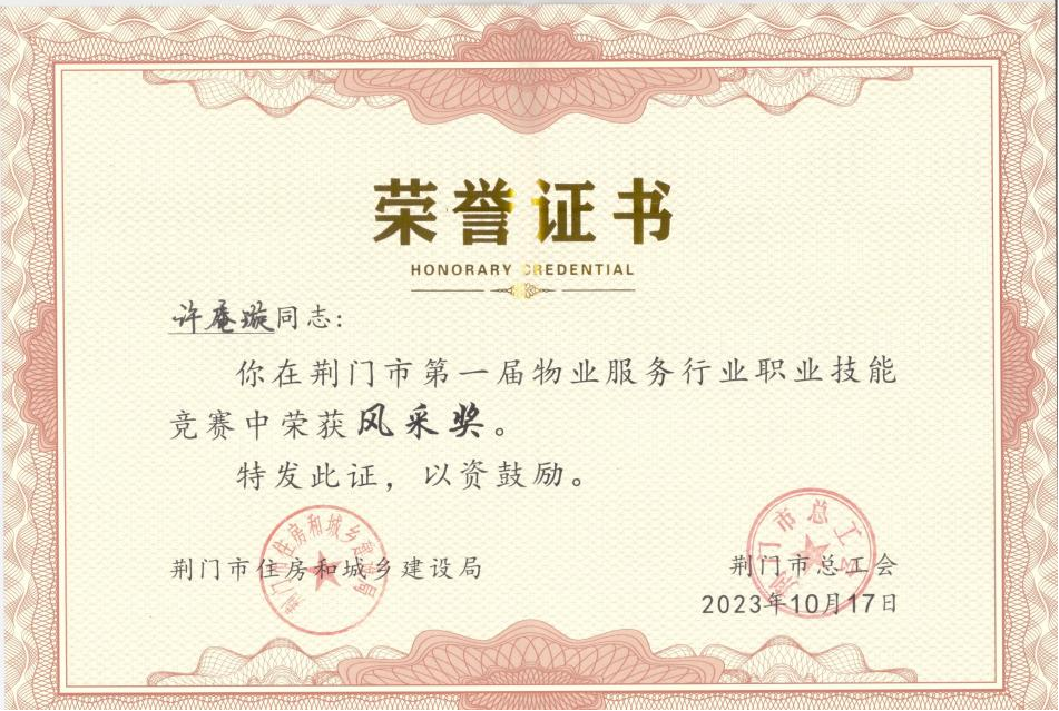 本次競(jìng)賽共有35支隊(duì)伍,共計(jì)100多人報(bào)名參加,競(jìng)賽內(nèi)容由集中筆試選拔、現(xiàn)場(chǎng)實(shí)操考評(píng)、物業(yè)知識(shí)問答三部分組成。本次競(jìng)賽中,物業(yè)公司獲得優(yōu)秀組織獎(jiǎng),公司員工許庵璇獲得風(fēng)采獎(jiǎng)。